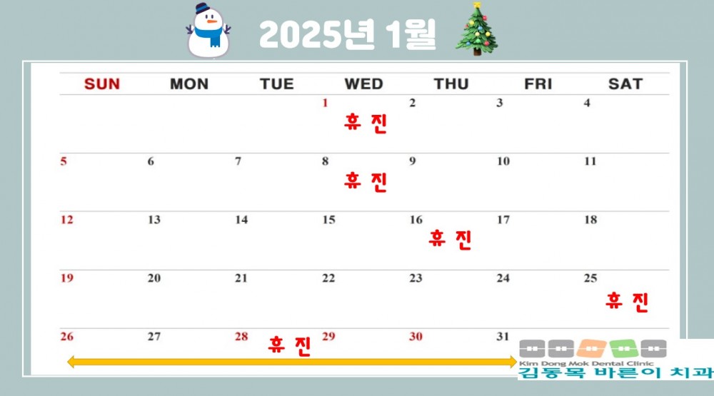 2025년 1월 진료 , 휴진 안내문입니다. 페이지 정보 작성자 김동목바른이치과 작성일24-12-14 11:10 조회939회 댓글0건 관련링크 이전글 다음글 목록 본문 2025년 1월 진료 , 휴진 안내문입니다. 댓글목록 등록된 댓글이 없습니다. 이전글 다음글 목록