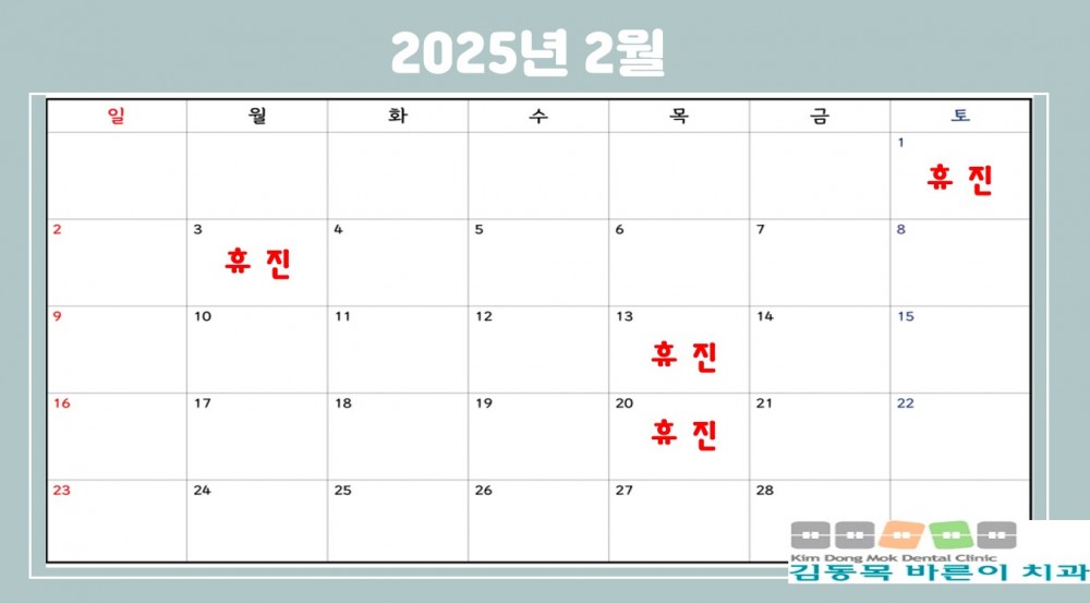 2025년 2월 진료안내입니다 페이지 정보 작성자 김동목바른이치과 작성일25-01-13 15:20 조회873회 댓글0건 관련링크 이전글 다음글 목록 본문 2025년 2월 진료안내입니다 문의사항 있으시면 053-562-5600 전화주시면 바로 도와드리겠습니다. 댓글목록 등록된 댓글이 없습니다. 이전글 다음글 목록