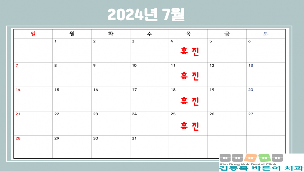 2024년 7월 진료안내입니다. 페이지 정보 작성자 김동목바른이치과 작성일24-06-28 10:40 조회1,664회 댓글0건 관련링크 이전글 다음글 목록 본문 2024년 7월 진료안내입니다. 댓글목록 등록된 댓글이 없습니다. 이전글 다음글 목록