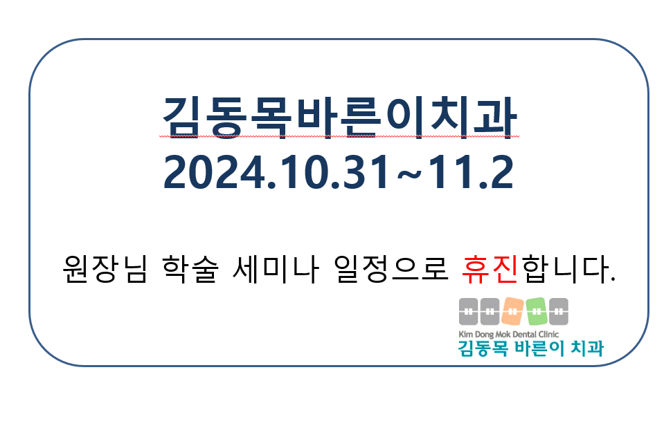 2024년 10월 31~11월 2일 휴진합니다. 페이지 정보 작성자 김동목바른이치과 작성일24-10-14 11:21 조회1,109회 댓글0건 관련링크 이전글 다음글 목록 본문 2024년 10월 31~11월 2일 휴진합니다. 댓글목록 등록된 댓글이 없습니다. 이전글 다음글 목록