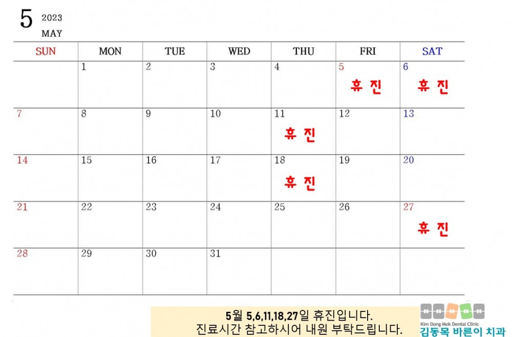 2023년 05월 진료안내 입니다. 페이지 정보 작성자 김동목바른이치과 작성일23-04-28 14:48 조회2,039회 댓글0건 관련링크 이전글 다음글 목록 본문 댓글목록 등록된 댓글이 없습니다. 이전글 다음글 목록