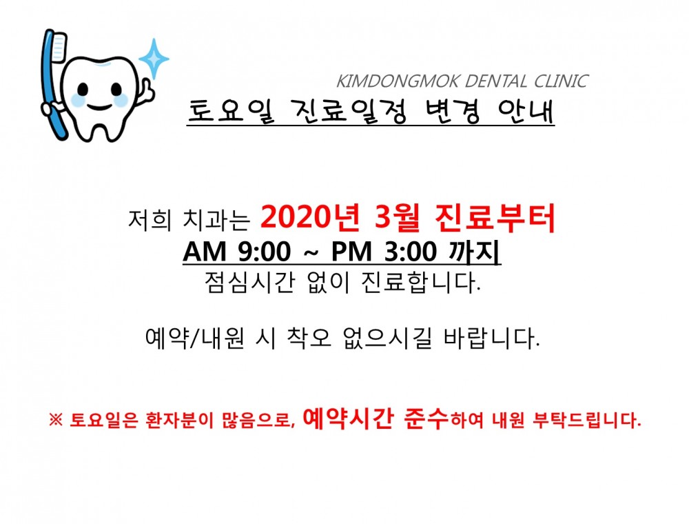 ※2020년 3월 토요일 진료시간 변경안내※ 페이지 정보 작성자 김동목바른이치과 작성일20-02-29 12:29 조회3,680회 댓글0건 관련링크 이전글 다음글 목록 본문 댓글목록 등록된 댓글이 없습니다. 이전글 다음글 목록