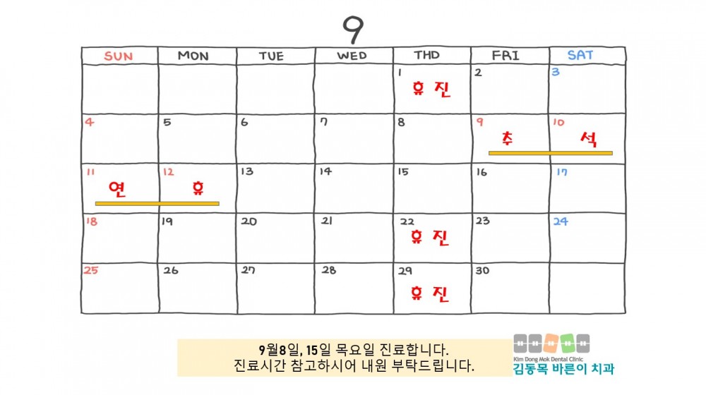 2022년 9월 진료안내 입니다. 페이지 정보 작성자 김동목바른이치과 작성일22-08-29 14:17 조회2,432회 댓글0건 관련링크 이전글 다음글 목록 본문 댓글목록 등록된 댓글이 없습니다. 이전글 다음글 목록