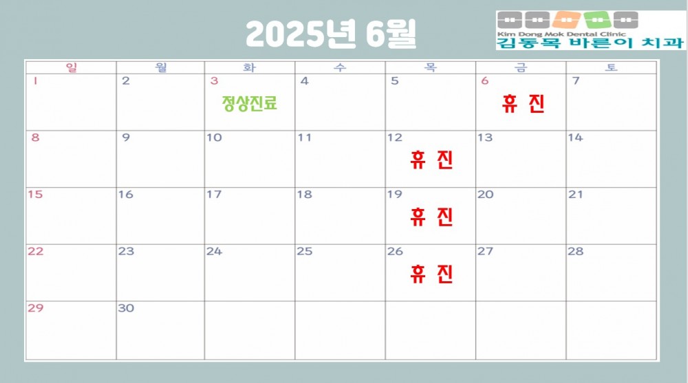 2025년 6월 진료안내입니다. 페이지 정보 작성자 김동목바른이치과 작성일25-05-19 10:08 조회602회 댓글0건 관련링크 이전글 다음글 목록 본문 2025년 6월 진료안내입니다. 댓글목록 등록된 댓글이 없습니다. 이전글 다음글 목록