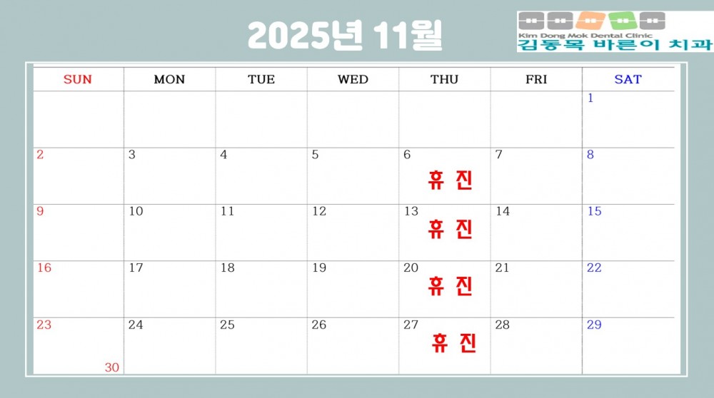 2025년 11월 진료안내입니다. 페이지 정보 작성자 김동목바른이치과 작성일25-10-21 14:18 조회174회 댓글0건 관련링크 이전글 다음글 목록 본문 2025년 11월 진료안내입니다. 댓글목록 등록된 댓글이 없습니다. 이전글 다음글 목록