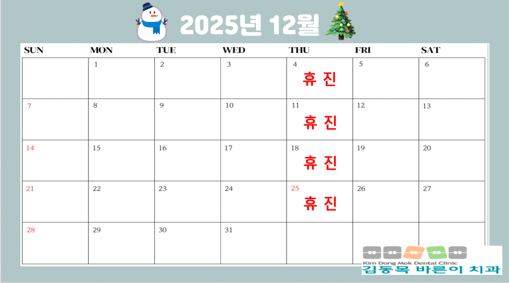 2025년 12월 진료안내입니다. 페이지 정보 작성자 김동목바른이치과 작성일25-11-21 11:10 조회39회 댓글0건 관련링크 이전글 다음글 목록 본문 2025년 12월 진료안내입니다. 댓글목록 등록된 댓글이 없습니다. 이전글 다음글 목록