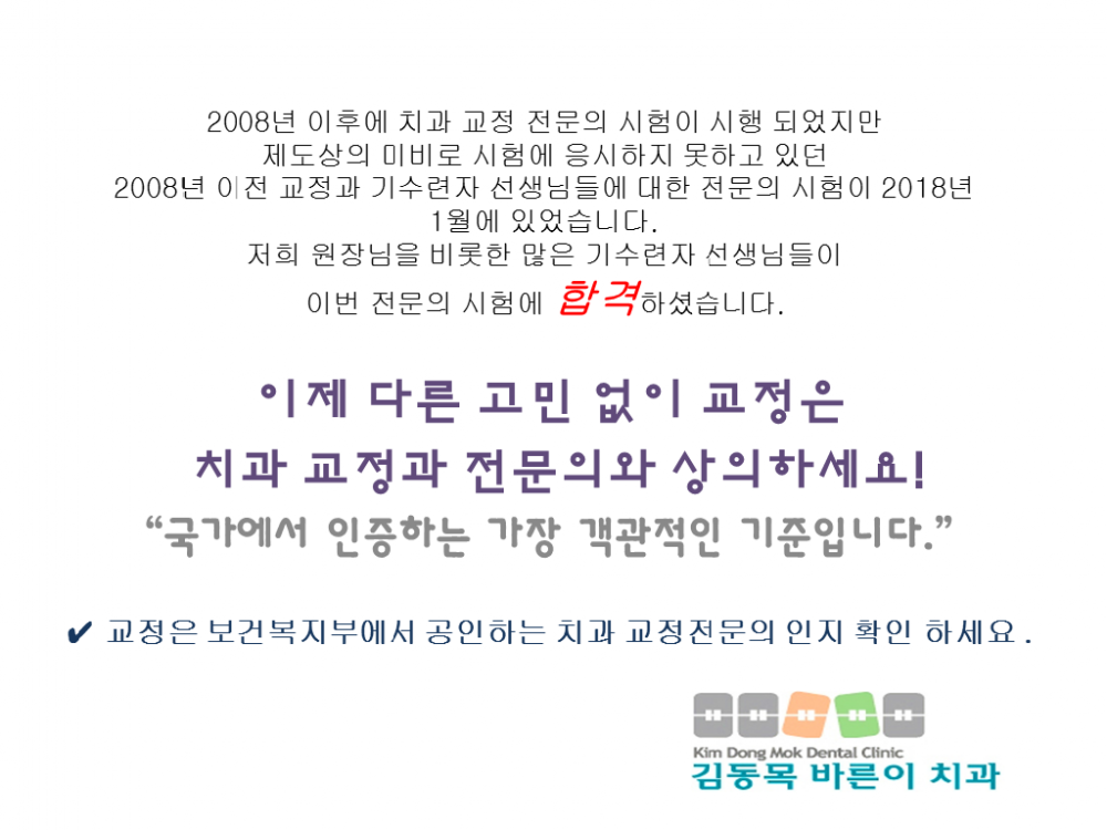 교정은 보건복지부가 공인하는 치과에서! 페이지 정보 작성자 김동목바른이치과 작성일18-03-19 14:33 조회4,032회 댓글0건 관련링크 이전글 다음글 목록 본문 댓글목록 등록된 댓글이 없습니다. 이전글 다음글 목록